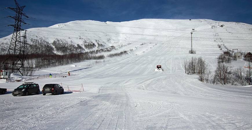 С высшей точки, которая находится на 890 метров над уровнем моря, открываются чудесные виды на заснеженные долины и вершины Хибинских тундр. Склоны обслуживают три бугельных подъемника. Один учебный подъемник используют для трассы, рассчитанной для новичков. Ски-пасс на день в сезон 2018-2019 года стоит 1200 рублей, разовый подъем – 200 рублей. Малышей до 5 лет пускают на подъемники бесплатно.