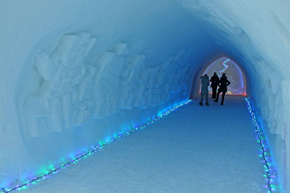 Это не метафора: она реально сделана из снега. Все домики и статуи построены приезжими мастерами. Внутри большого снежного дома проводят экскурсии, каждый год они разные.