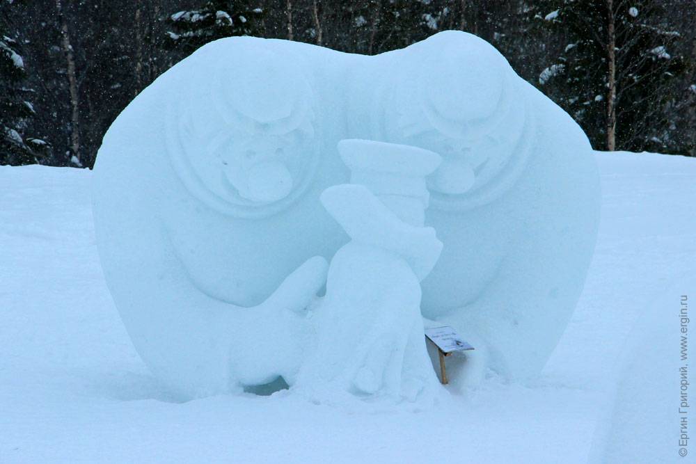 На улице не так хорошо видно — снег сливается с фоном, но и эта часть экспозиции заслуживает внимания. Жалко, что скульптуры снаружи теряют вид — покрываются выпавшим снегом, где-то подтаивают.