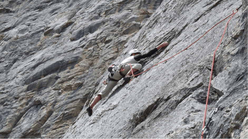 - Природный рельеф предполагает формирование страховочных точек при помощи забивания в скалу специальных крючков.