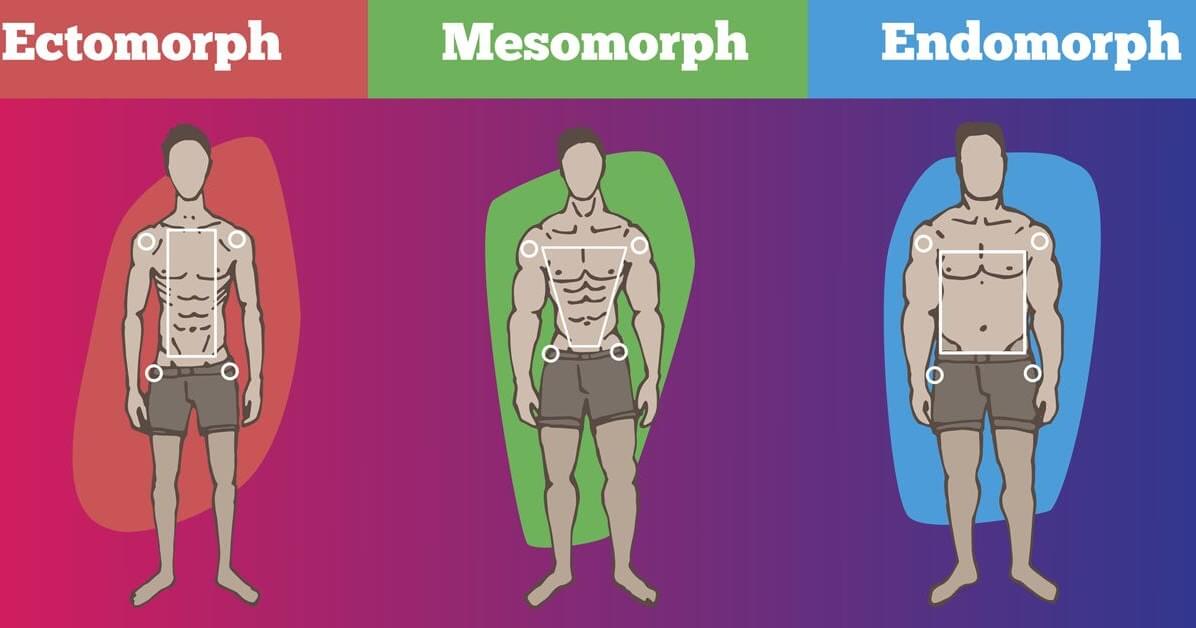 Типы телосложения тела у мужчин: 1-эктоморф, 2-мезоморф, 3-эндоморф