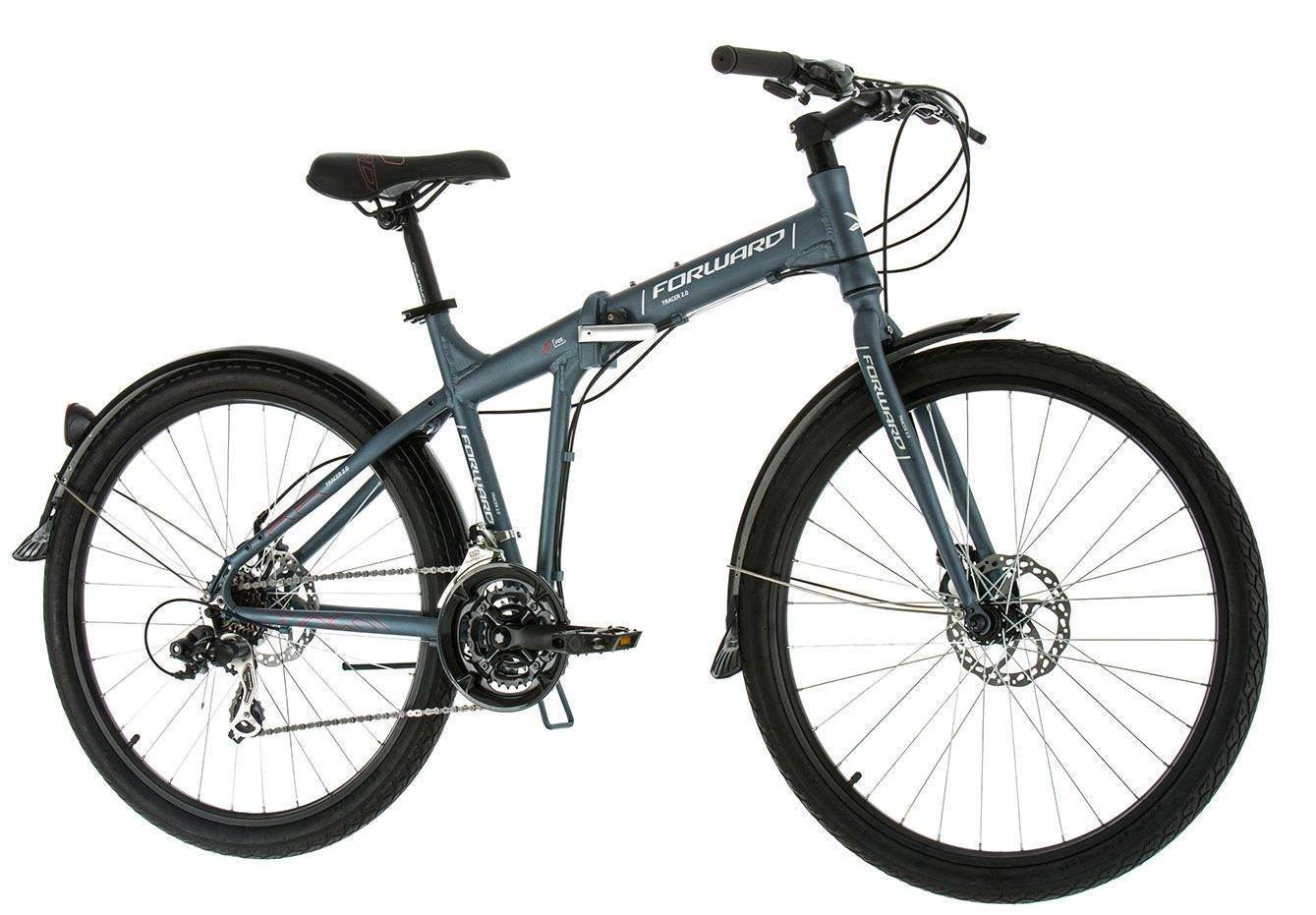 В список рейтинга входит и велосипед Forward Tracer 2.0 disc. Городской байк со спортивной посадкой предназначен для активной езды. Оснащен полноразмерными крыльями и подножкой. Специальная технология складывания замка петлевого типа усиливает прочность конструкции. Алюминиевая рама имеет минимальный вес, модель эргономична, дисковые механические тормоза высокоэффективны, имеется защита цепи.