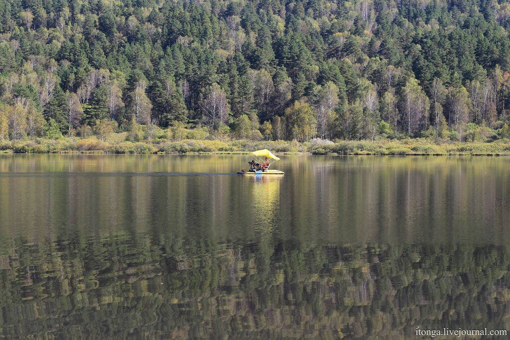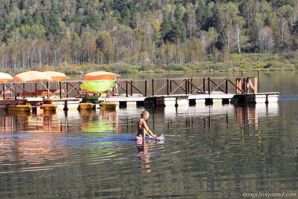 Горный Алтай осенью особенно красив. А вот озеро заросло не пойми чем, да и заметно, что вода не проточная. Глубина не превышает 3-ёх метров.