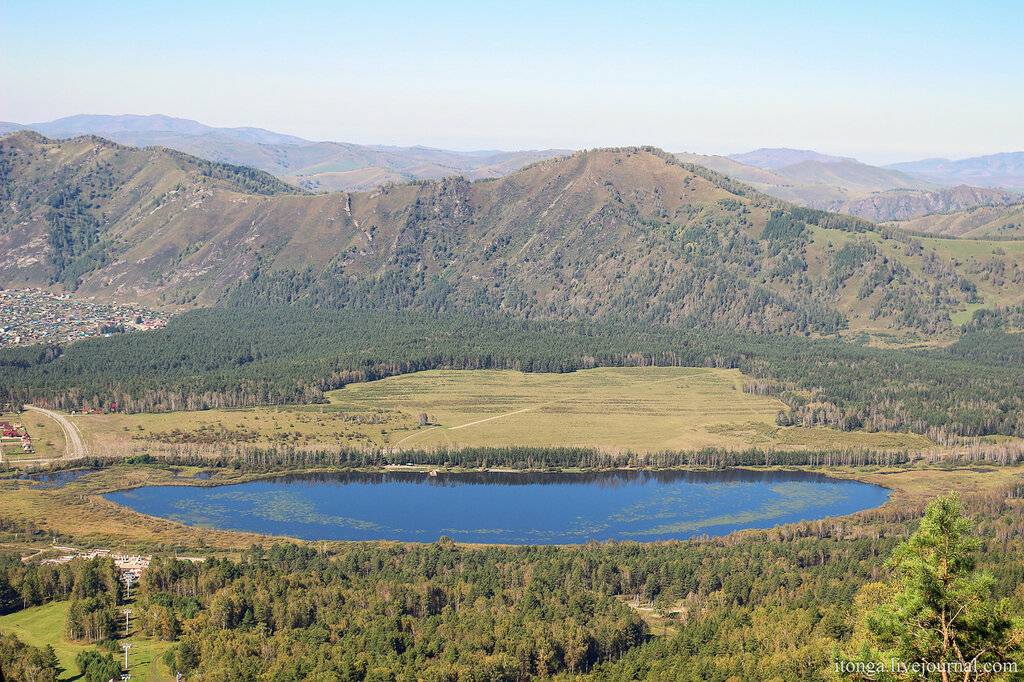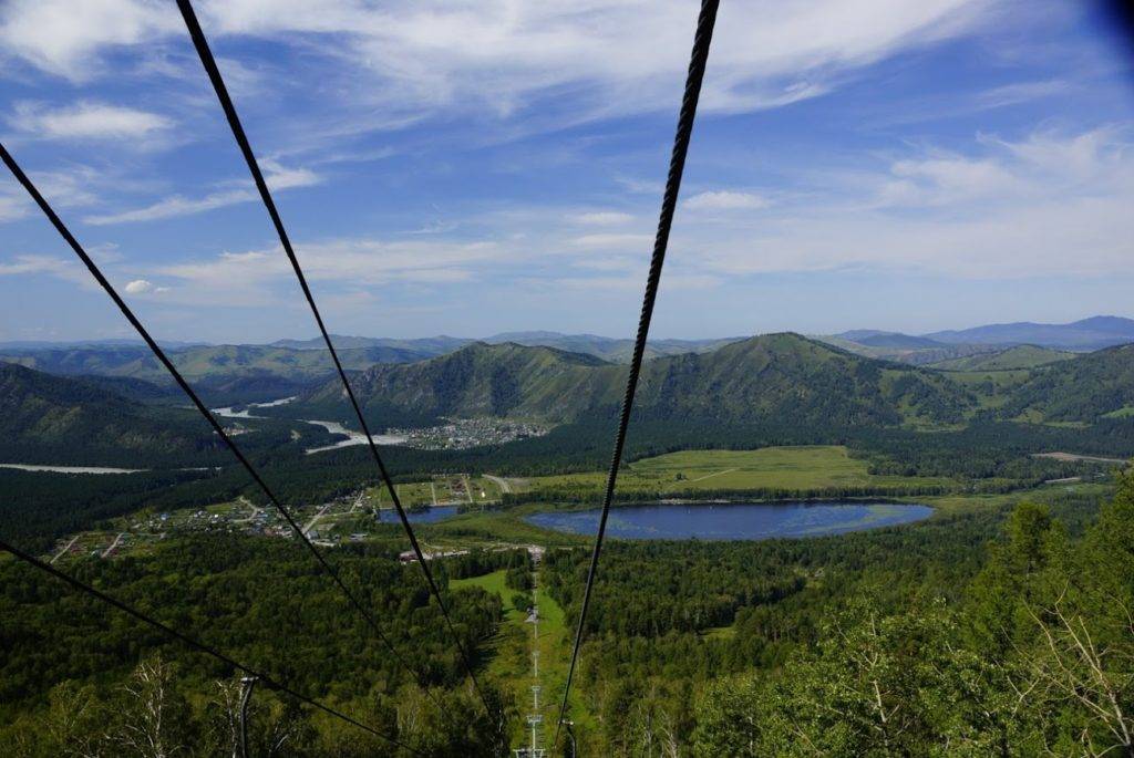 С канатной дороги отличный вид на Манжерокское озеро Доингол. В переводе с алтайского название Доингол означает озеро князей.