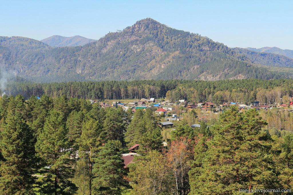 На фото выше – гора Острая. На фото ниже село Манжерок, точнее его новая часть – Озёрное. Село активно застраивается.
