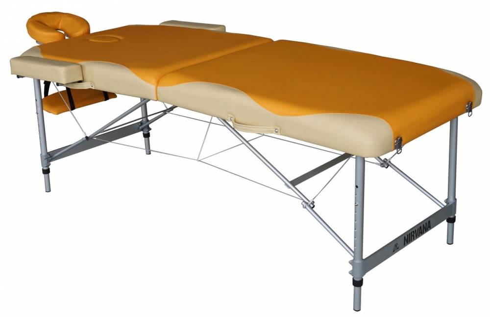 Хорошим выбором станет двухсекционная складная модель US Medica Samurai с мощной рамой из бука. Стол весит примерно 17 кг. Максимальная нагрузка составляет 230 кг. В комплект дополнительного оборудования входит эргономичный подголовник, съемные подставки и фиксаторы для рук.