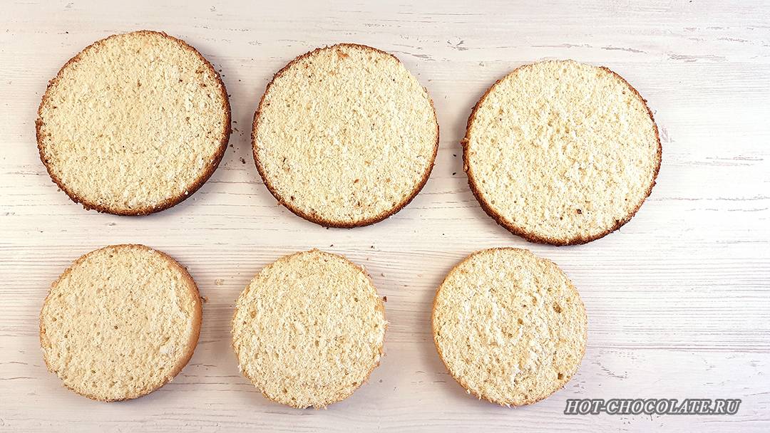 - После выпечки дать бисквиту остыть до тёплого состояния и извлечь его из формы. Остудить бисквит до комнатной температуры на решётке.