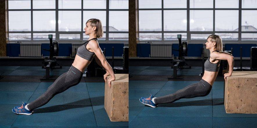 Особенно полезны отжимания от скамьи в упоре сзади для женщин, поскольку в зоне трицепса у них откладывается больше жира, чем у мужчин. Отсюда дряблость рук, целлюлит и растяжки.