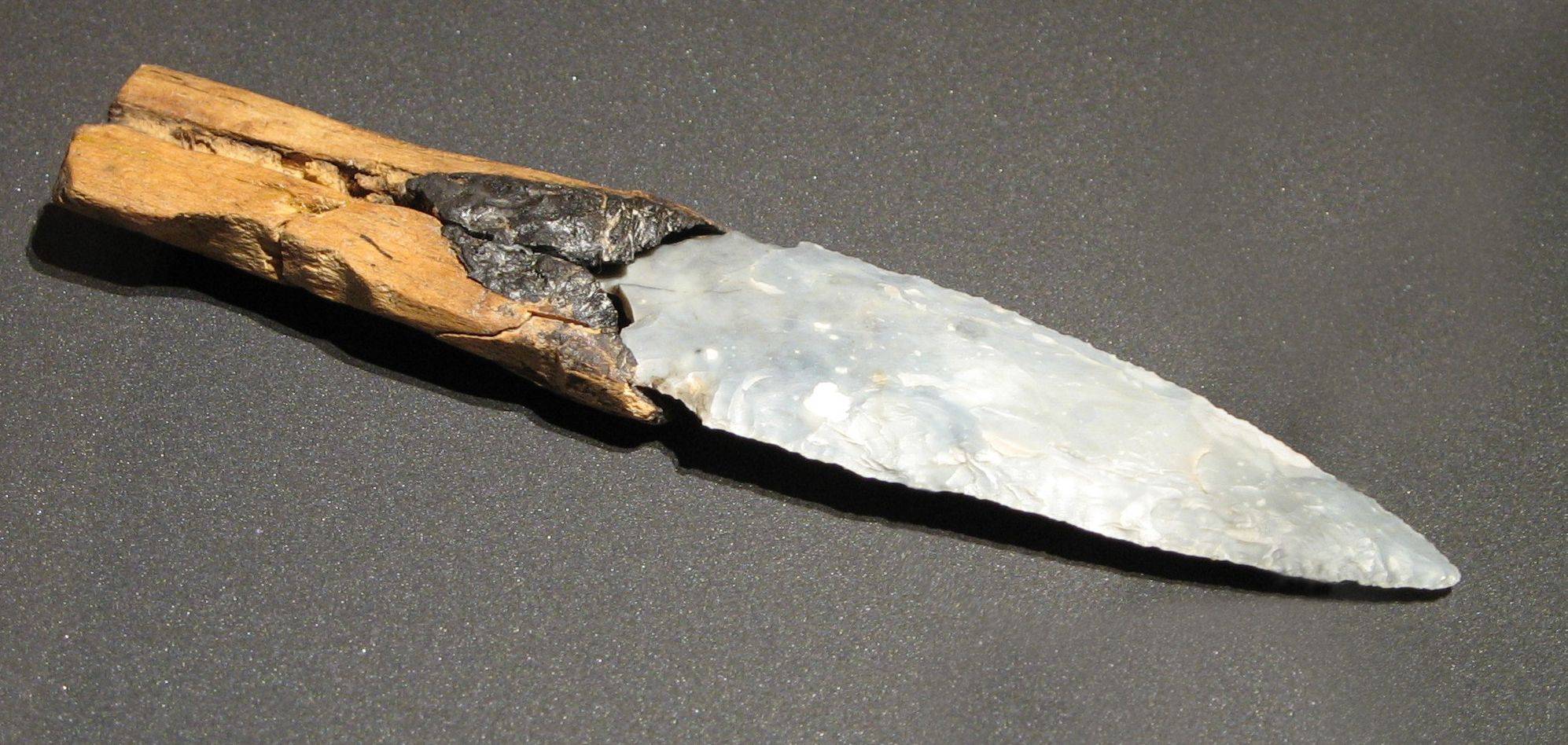 Самыми древними орудиями считаются изделия каменного века. Они были в виде каменных отщепов, и специально их не обрабатывали. Тогда и не было речи про рукоять ножа.