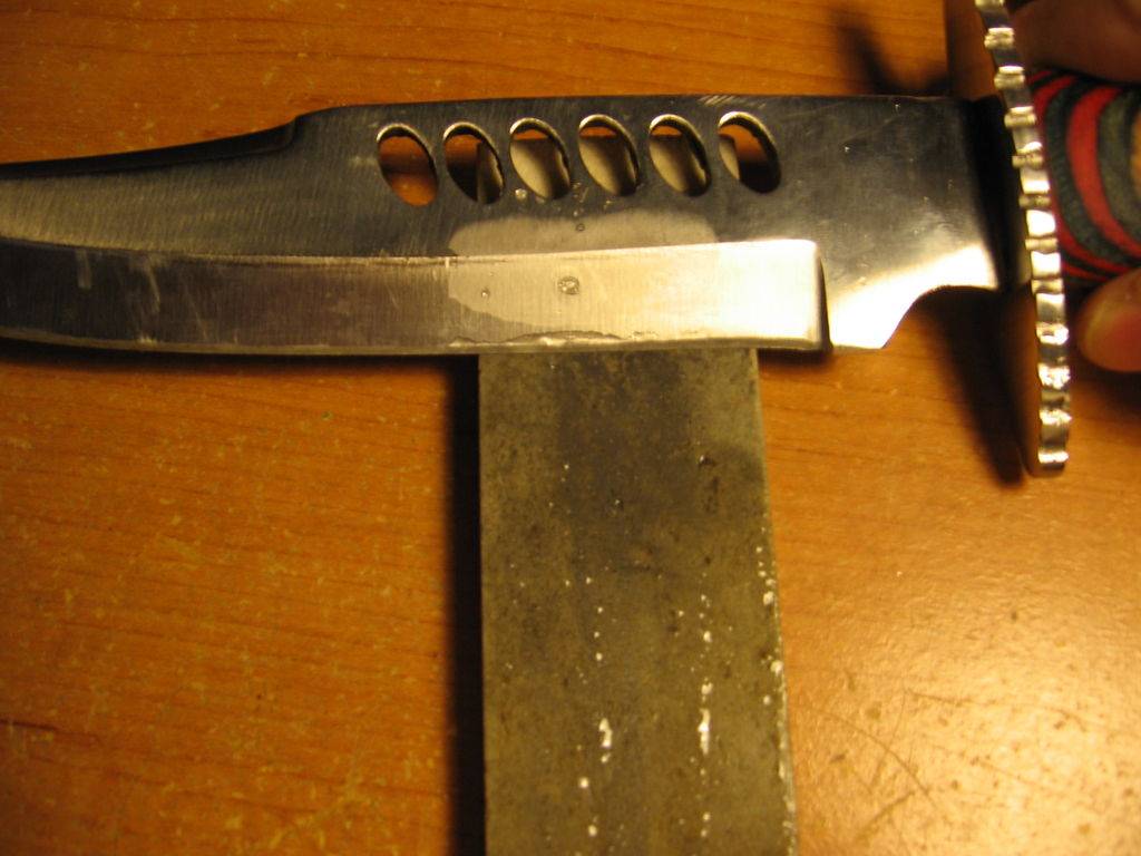 С вогнутыми спусками, сделать которые легче всего, нож окажется малоэффективным. С заточкой «плоский клин» клинок будет обладать средними показателями резки. Однако это станет возможным при двухмиллиметровом лезвии. Если в качестве сырья используется ножовочное полотно, то его толщины в данном случае окажется недостаточно. Рекомендуется оснастить нож заточкой в виде вогнутой линзы. Клинок будет эффективным для сквозных прорезаний.