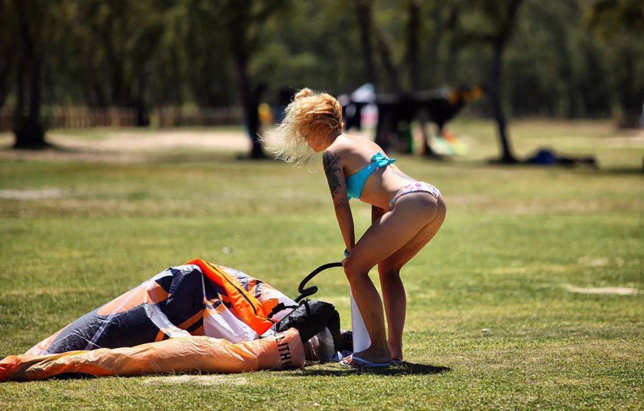 Первый этап — научиться раскладывать стропы и накачивать кайт. Пока — ничего сложного, к тому же отлично прокачивает ягодичные мышцы.