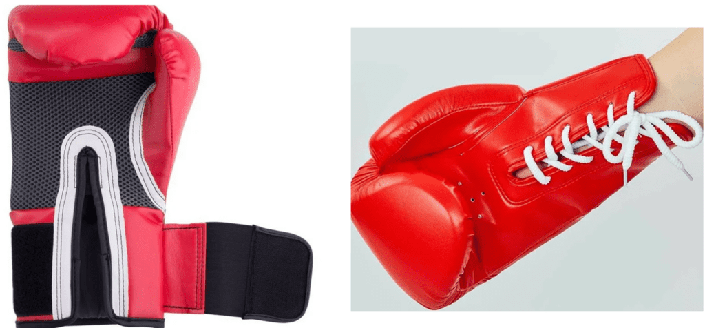 Фиксация запястья. Начинающие боксеры могут приобрести перчатки на липучках. В профессиональном или любительском бою применяется данный вид экипировки только на шнуровке, но современные модели с липучками тоже очень надежные, там используется специальная фурнитура, которая хорошо фиксирует запястье.