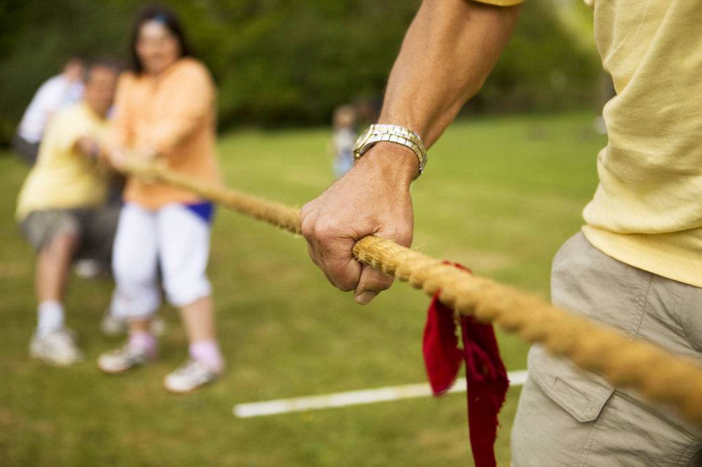 Кроме классического командного перетягивания каната можно придумать множество вариантов: