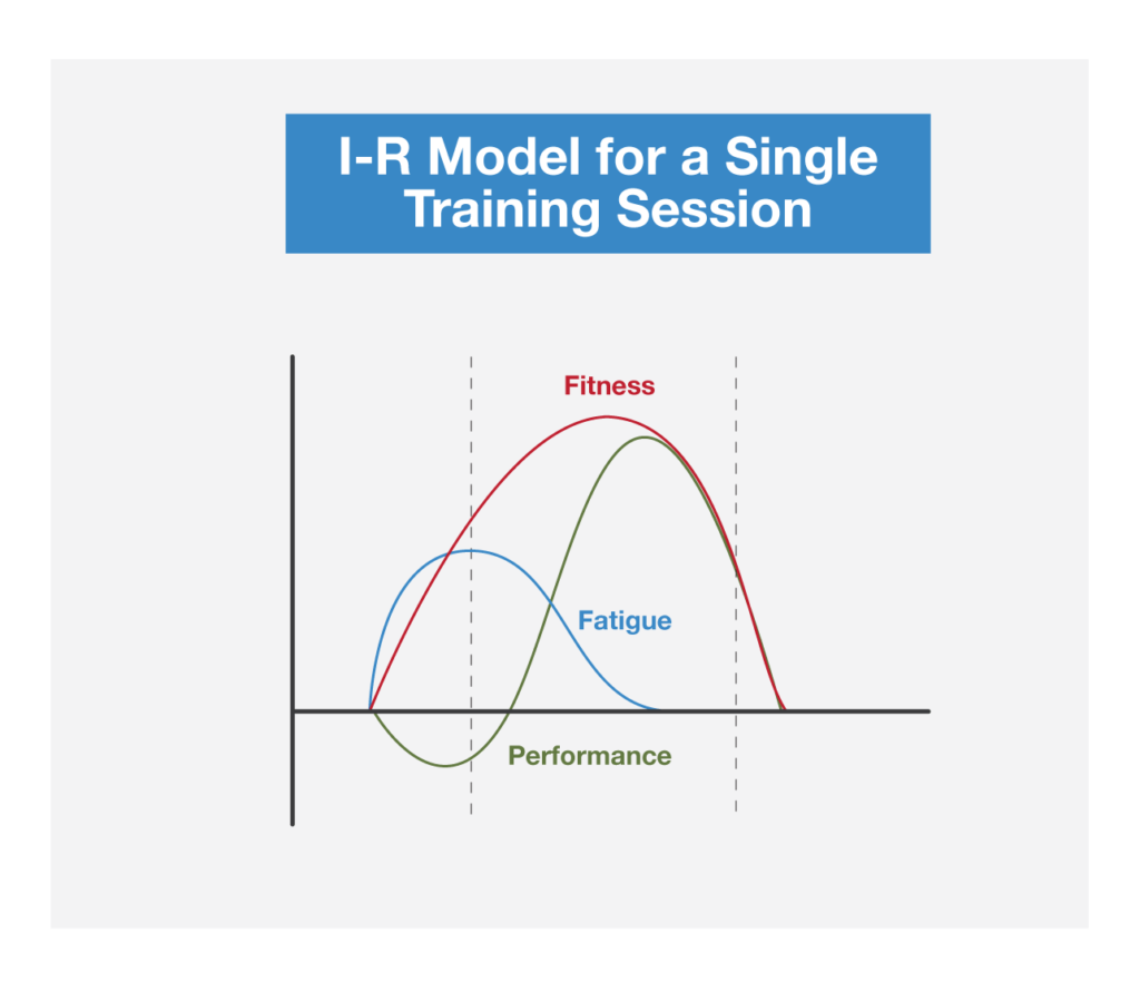 Критикуя – предлагай, так что вот вам график «Импульс-реакция» (на отдельно взятую тренировку) из работы Банистера, посвященной именно спортивной подготовке и лучше описывающей острые и хронические (быстрые и долгосрочные) изменения от нагрузок: