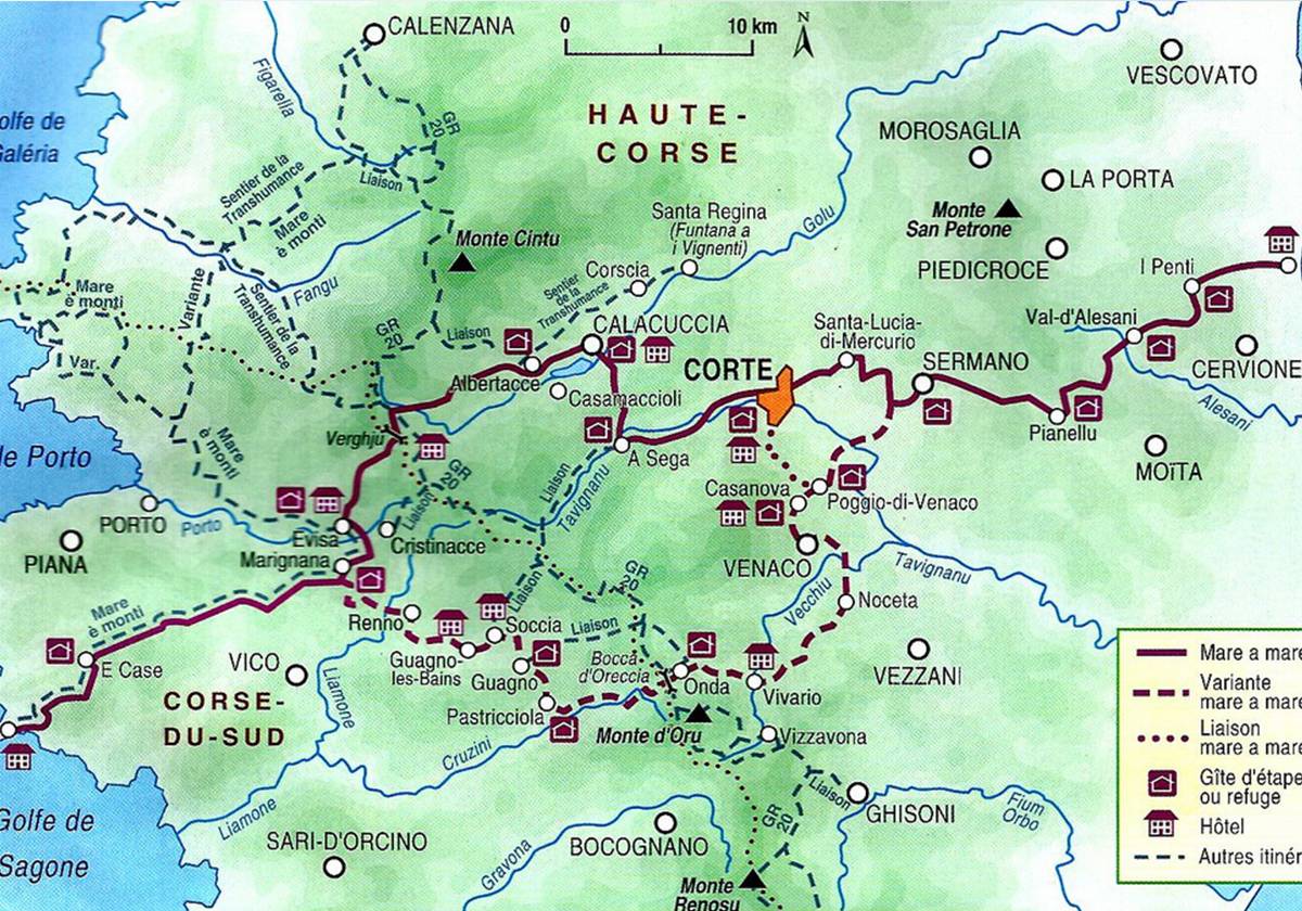 Маршрут. Самый известный и красивый маршрут Корсики — GR 20, но он подойдет только тертым калачам: если вы с походами на «вы», то лучше начните с чего попроще. Например, с маршрута «Oт моря к морю — Север» (Mare a mare Nord). Существуют еще два пути от моря до моря — центральный и любимый автором южный, но до их отправных точек сложнее добраться, а путь до Корсики уже не очень прост по логистике. До начальной же точки этого маршрута, Мариани, легко доехать на автобусе от Бастии. Путь занимает 137 км и рассчитан примерно на 5–6 дней.