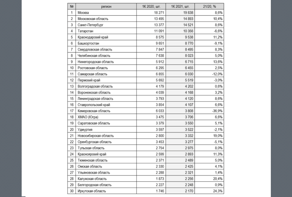 Москва, Питер, Краснодарский край, а также Нижегородская, Калужская и Иркутская область — в лидерах.