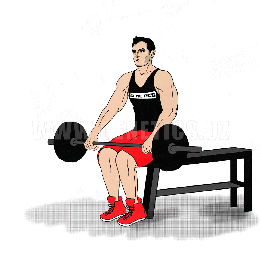 - гриф штанги поместите на бёдра, удерживая его двумя руками;