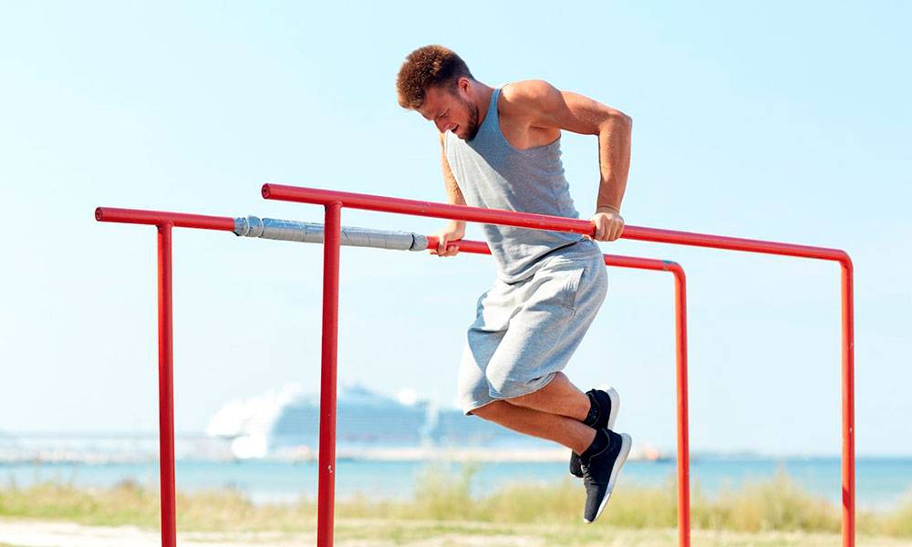 - 1-3 недели – подтягивания на турнике и отжимания на брусьях (5 сетов по 5 повторов), 1 минута отдых между повторами и 2 минуты между сетами.