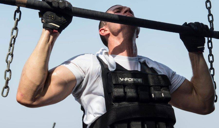 Прежде чем приступить к подтягиваниям с отягощением, обязательно сделайте один-два подхода без веса на 8-10 повторений в каждом. Выполнив разминку, наденьте дополнительное отягощение (это может быть жилет-утяжелитель, атлетический пояс с блинами и т. д.).
