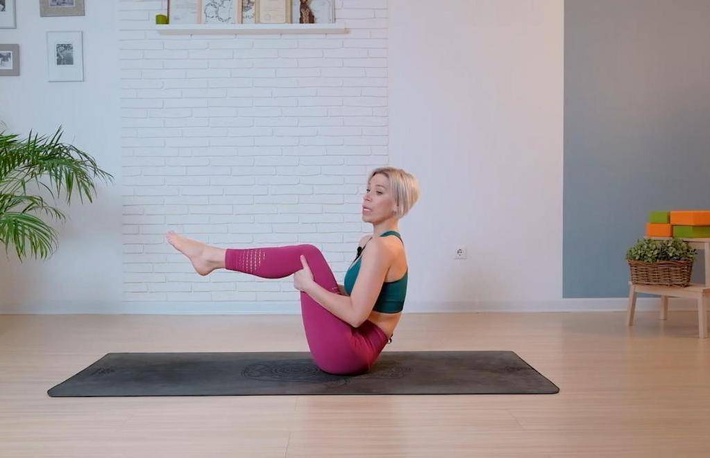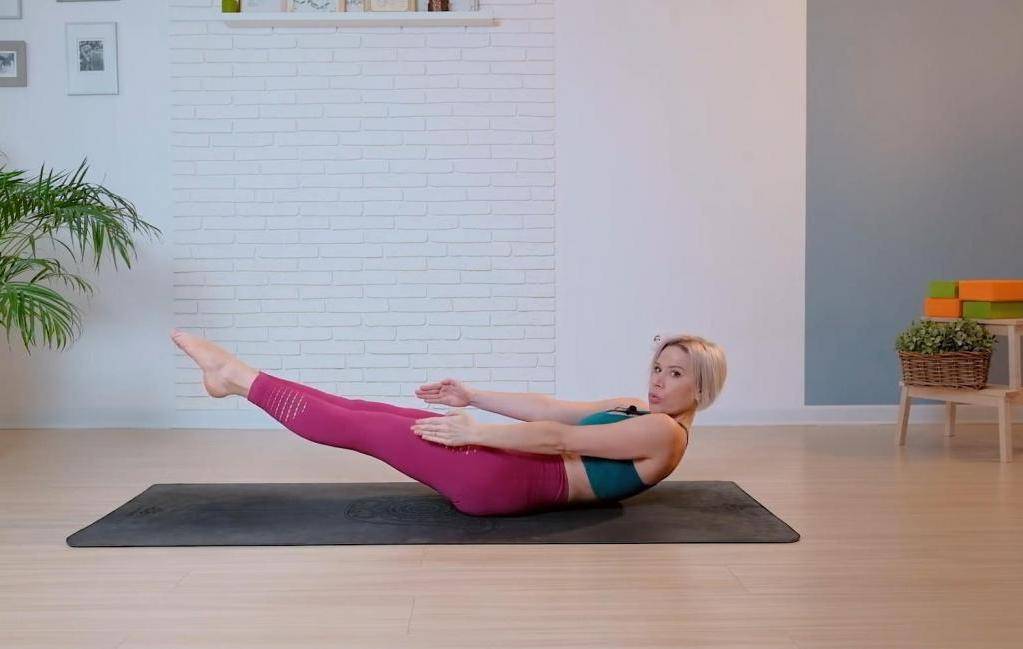 Это упражнение пришло из йоги. Оно хорошо укрепляет пресс, руки, мышцы ягодиц и спины.