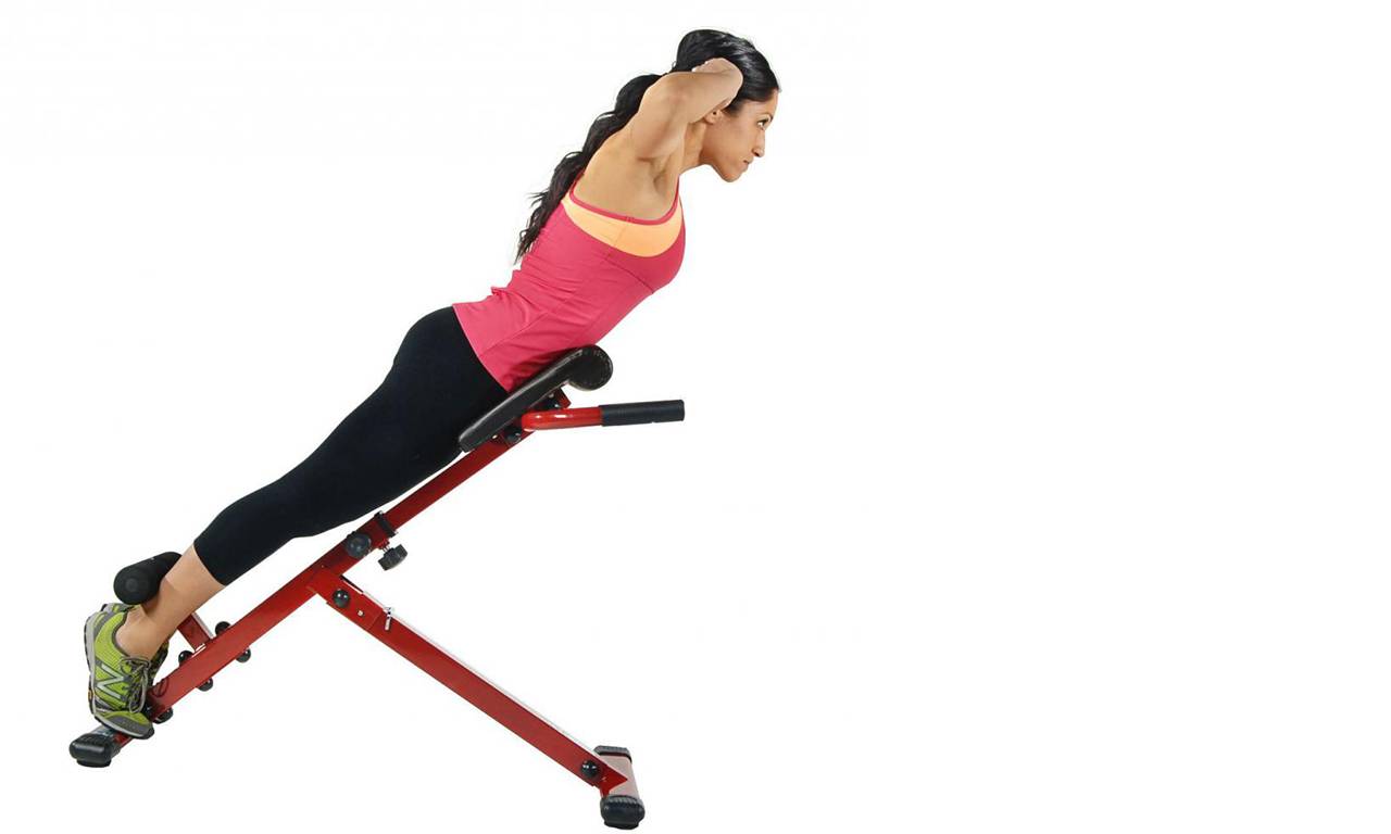 - Наклонитесь, сгибая локти, и коснитесь грудью скамьи.
