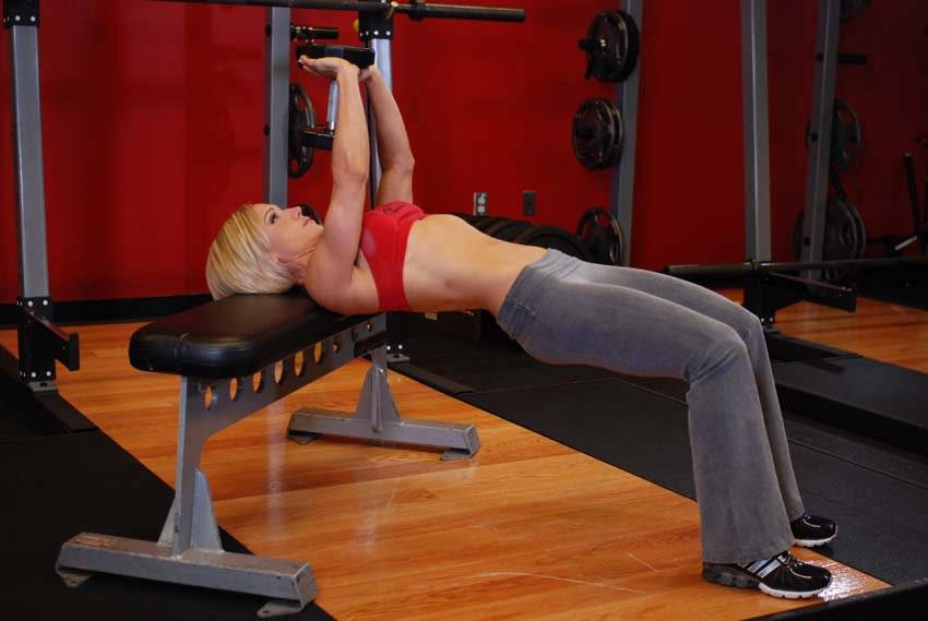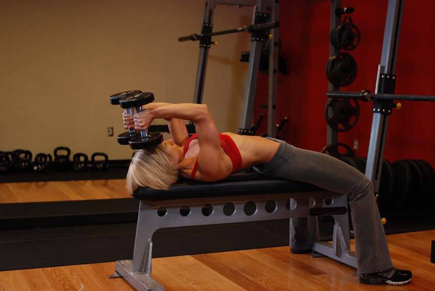 Пуловер с гантелей лежа на скамье