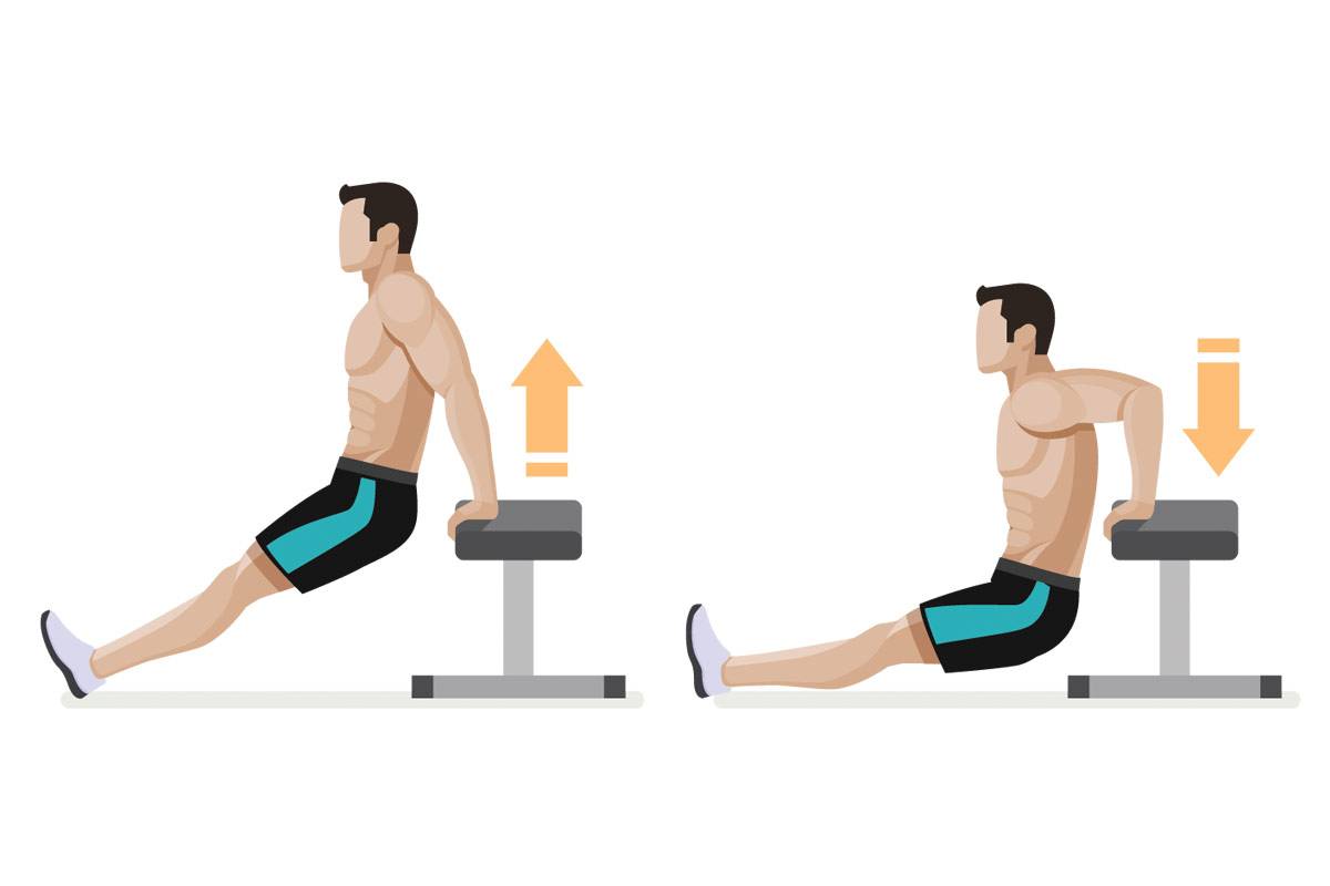 Упражнение для разминки верхней части тела и подготовки суставов к работе. Может выполняться как от земли, так и на двух скамьях — отжимания на брусьях также допустимы. В верхней точке старайтесь вытолкнуть вес тела как можно выше. 2-3 подхода по 12-15 повторений.
