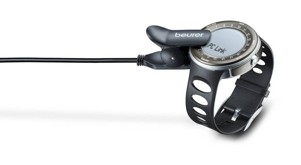 Помимо пульсометра здесь присутствует шагомер, показывается количество потерянного жира и расходованных калорий. Также устройство оснащено будильником, календарем и секундомером. Благодаря водонепроницаемости прибор можно использовать даже при неблагоприятных погодных условиях. Основные достоинства модели Beurer: