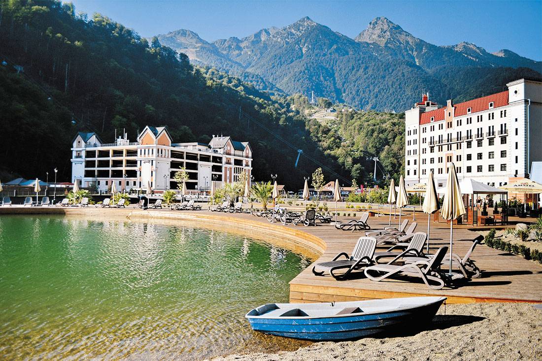 Если хотите немного разнообразить свой отдых в горах – позагорать и расслабиться на песке у воды, совсем не обязательно спускаться вниз, к морю. Можно отправиться на берег искусственного озера, расположенного в Роза Долине, за отелем «Radisson».
