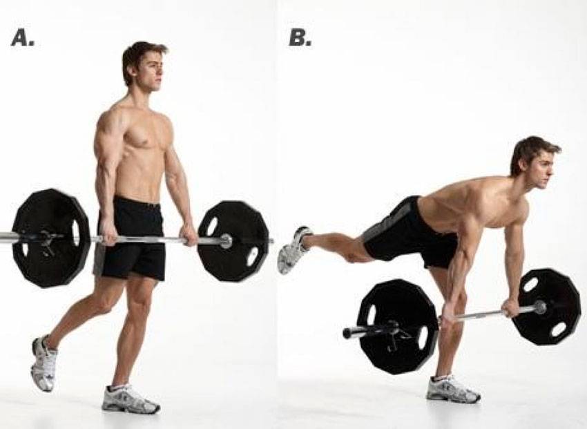 Колен рабочей ноги чуть согнуто, свободной – прямое; Важно не тянуть гриф руками, поэтому требуется использовать достаточно существенный вес для того, чтобы упражнение выполнялось правильно. Журавлик или румынская тяга на одной ноге. Журавлик или румынская тяга на одной ноге