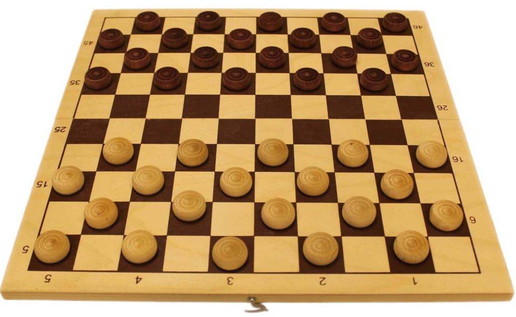 Размер игрового поля – 8×8 клеток. У каждого игрока 12 фишек, которые он расставляет на темные квадраты в три ряда. Доску располагают так, что в левом нижнем от игрока углу располагается черная клетка.
