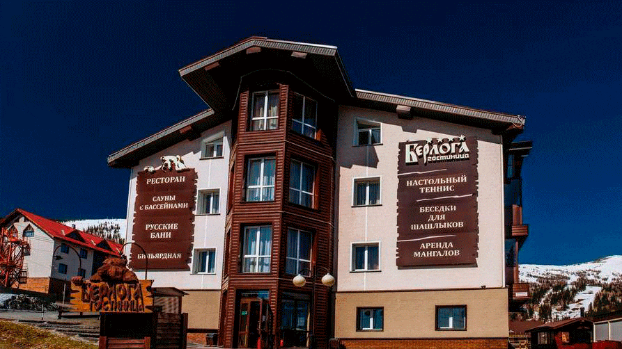 Гостиница построена из сруба, номер большой 1 — комнатный с диваном, телевизором и другими жизненными благами. Из окна было видно гору, а на 1-м этаже была сауна и сушилка для оборудования. Во многих гостиницах есть массажные кабинеты.