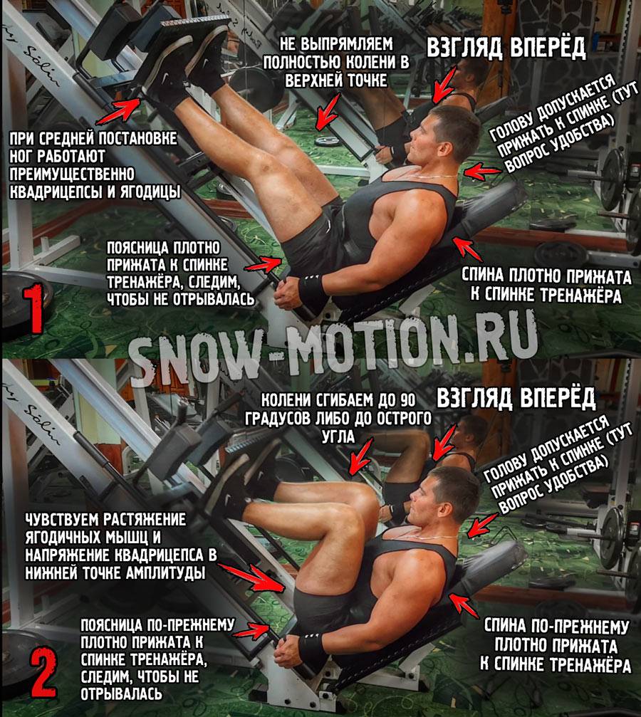 С одной стороны, техника жима ногами лежа достаточно проста, с другой, для большей эффективности необходимо знать ее некоторые нюансы.