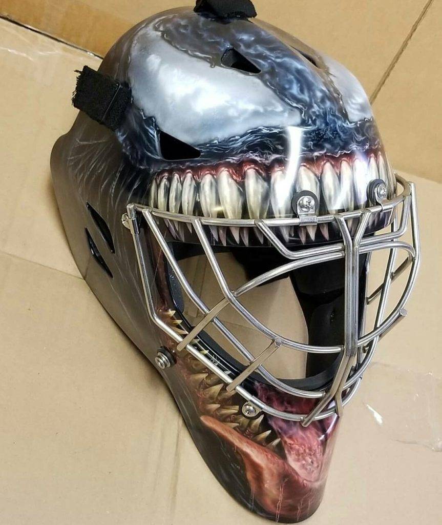 Если маска будет сидеть на спортсмене неплотно, то хоккеист может получить травму. Надежно зафиксированная защита выглядит следующим образом: