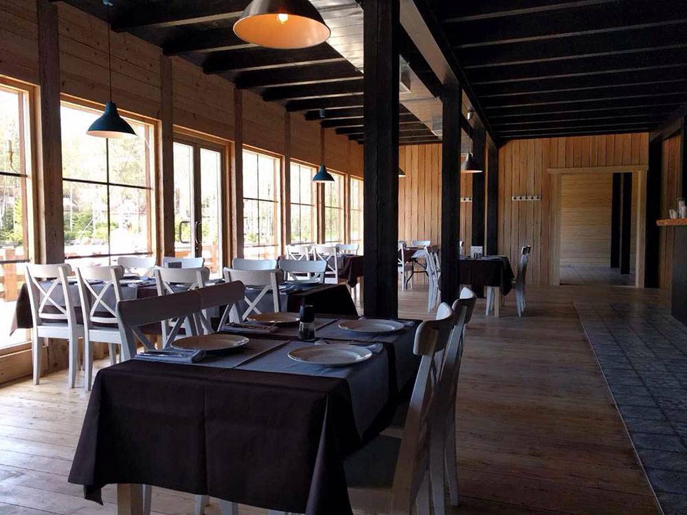На территории работают кафе, уютный бар, ресторан. Услуги инструктора. Прокат снаряжения.