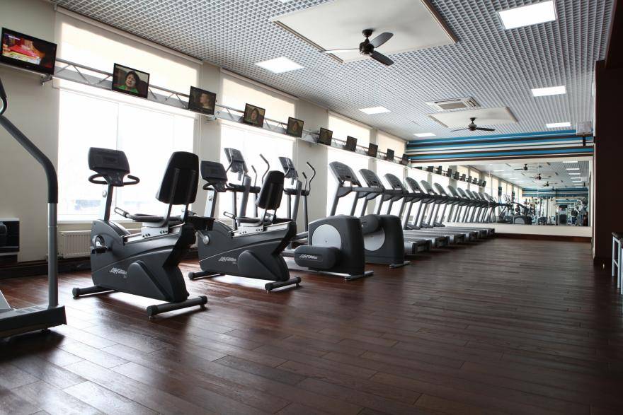 Каждый зал оснащён необходимым оборудованием, в которое входят беговые дорожки и тренажёры, предназначенные для разных групп мышц.