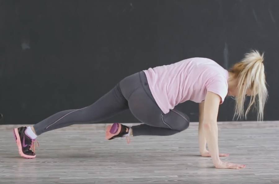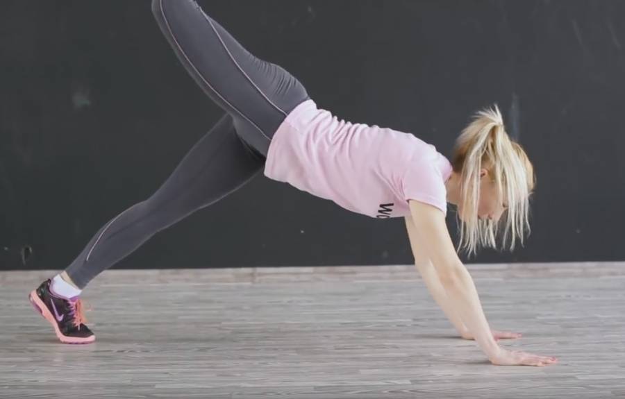 - Махи согнутыми конечностями. Для выполнения упражнения для бёдер и икр нужно спуститься на пол, на четвереньки. Выполняются махи назад согнутой ногой. Для выполнения направить на себя конец носка, вытягивать ногу настолько высоко, насколько возможно.