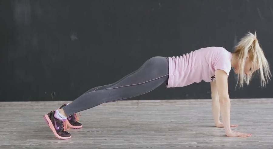 Примите упор лежа, стараясь держать корпус прямым.