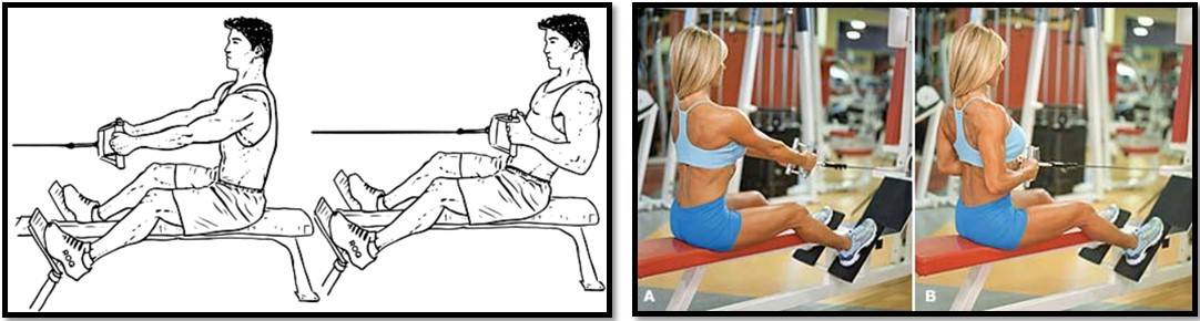 - подтягивайте рукоять к себе не за счет рук, а за счет широчайших, вследствие изолированного отведения локтей назад и сжатия лопаток;