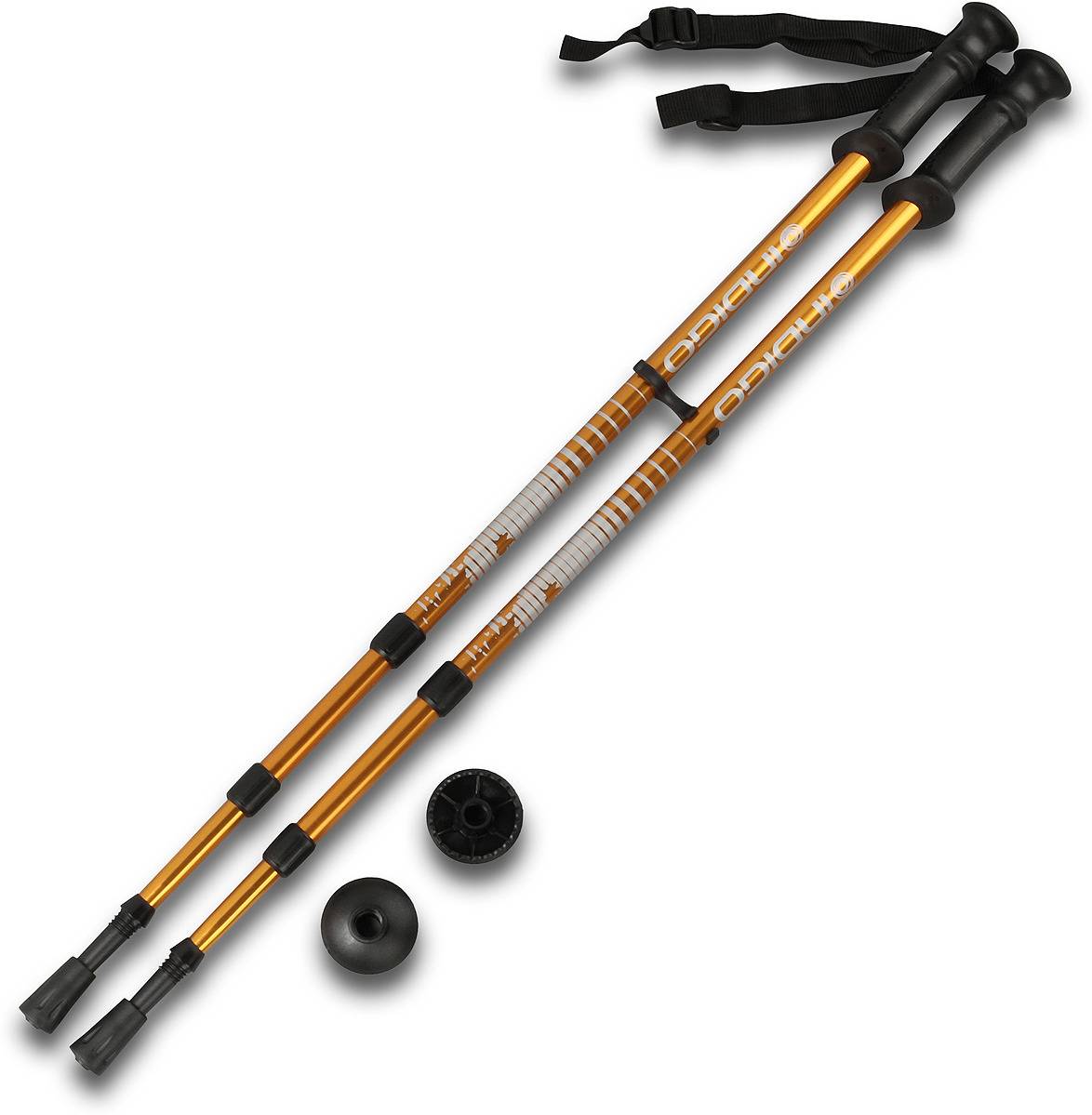 Телескопическая палка состоит из нескольких полых трубок, которые входят одна в другую. Обычно трубок три, их диаметр 14, 16 и 18 мм. Все части фиксируются, а длину можно настроить – от 60 до 145 см. Главный недостаток – большой вес – от 300 до 500 г. Для ходьбы по горной местности это слишком много.
