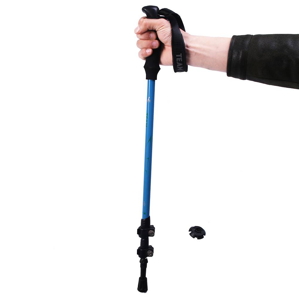 Состоит из нескольких секций трубок различного диаметра (чаще всего 3 секции диаметром 14/16/18 мм), складывающихся друг в друга. При складывании все части надёжно фиксируются фиксатором — запорным механизмом. Главный плюс телескопических палок в том, что длину можно легко регулировать от 60 до 145 см.