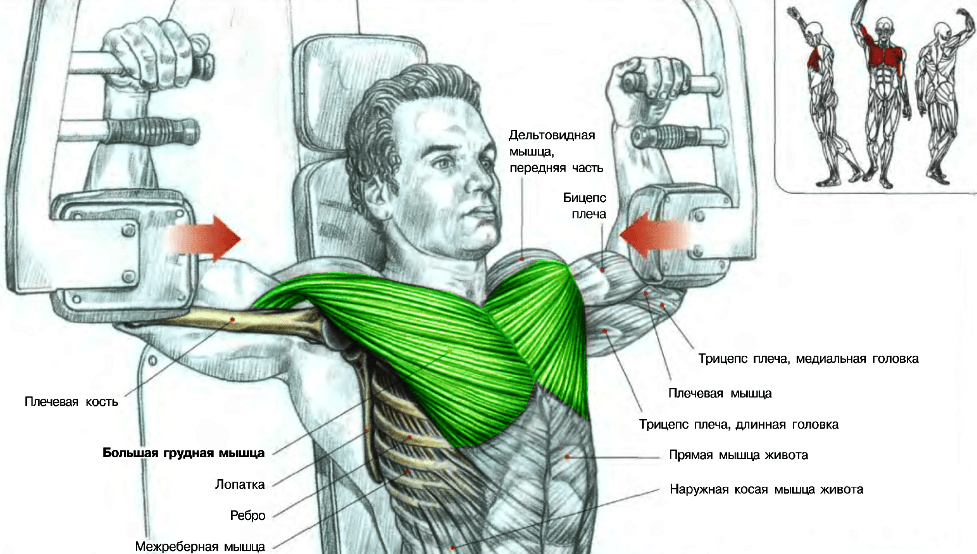УПражнение дл ягрудных мышц — сведение рук в тренажере бабочка