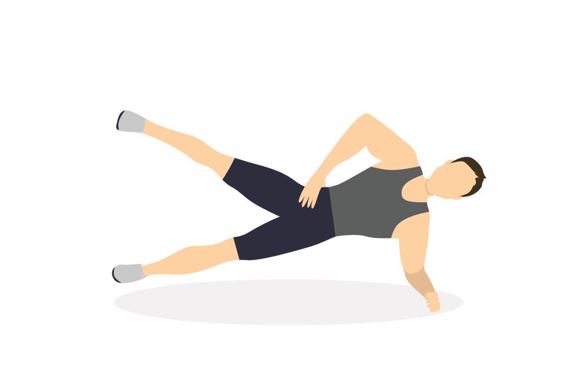 На коврике лягте на один бок, обопритесь на согнутую в локте руку. Оторвите от пола бедро и постарайтесь выпрямить тело в одну линию. Пытайтесь не задерживать дыхание, напрягая пресс.