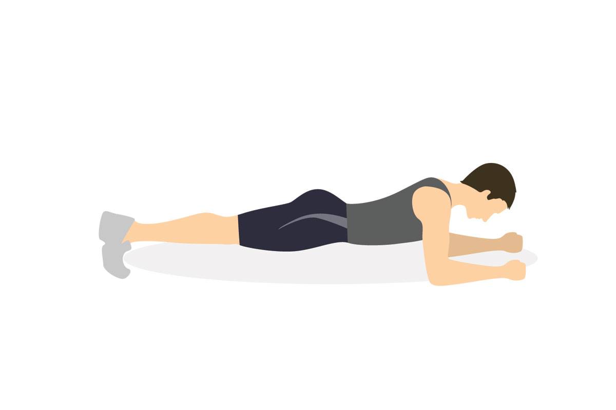 Примите положение лежа на полу лицом вниз. Приподнимитесь и обопритесь на согнутые перед собой руки, пальцы ног. Ладони направляйте вперед. Задержитесь на 60 секунд.