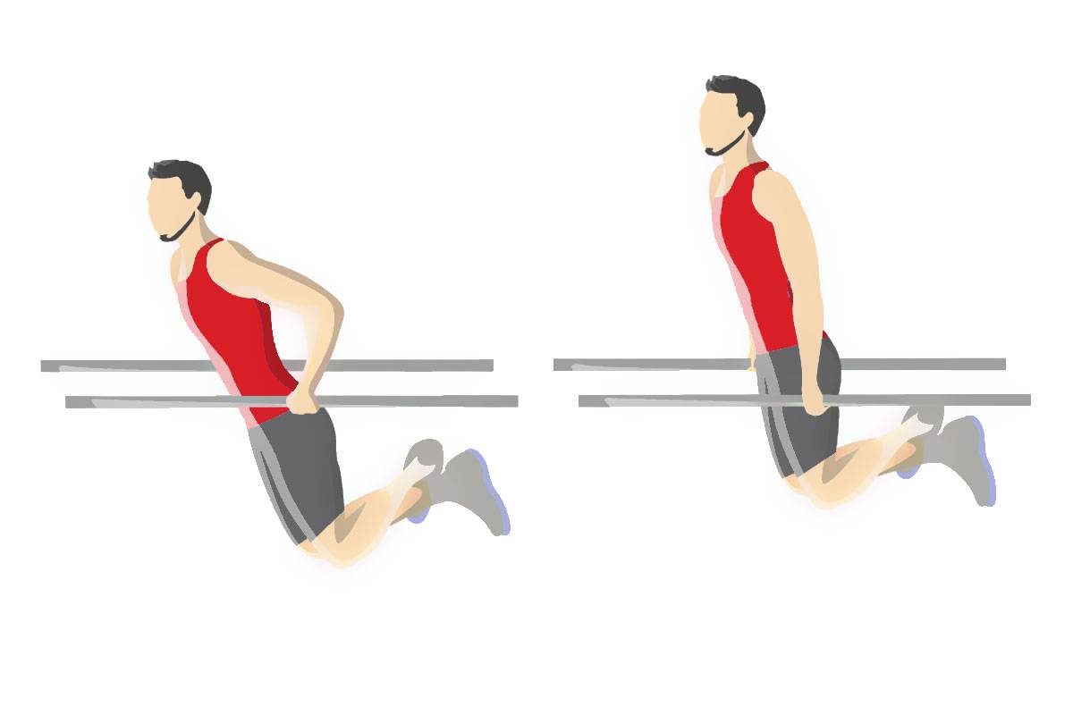 Статическое упражнение для развития грудных мышц, мускулатуры плеч и трицепса. Сперва выжмите вес тела как можно выше, затем задержитесь на 20-40 сек.