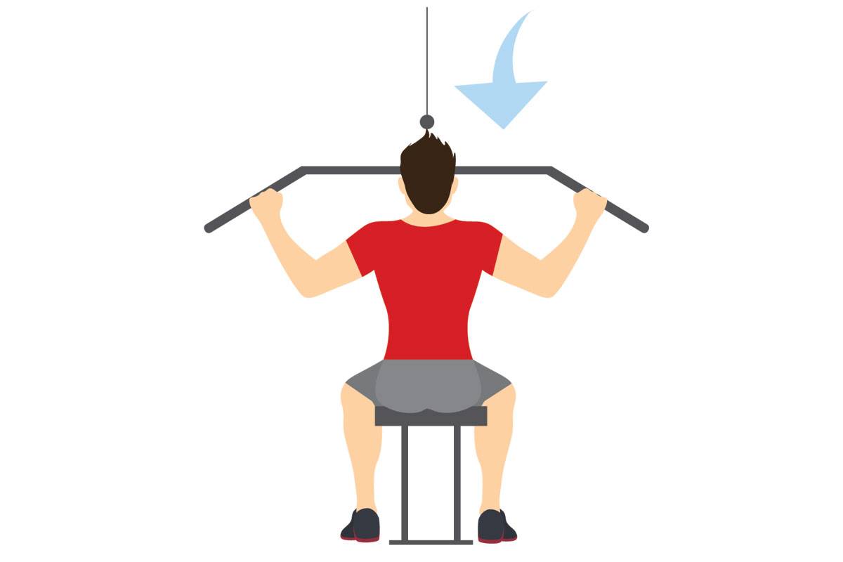 Упражнение для укрепления широчайших мышц спины и укрепления трицепса. Сперва подтяните штангу до уровня подбородка, затем, За счет силы мышц спины удерживайте ее вес 20-40 сек.