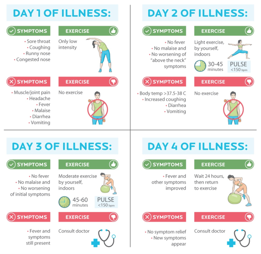 Как тренироваться при болезни: инфографика от Precision Nutrition