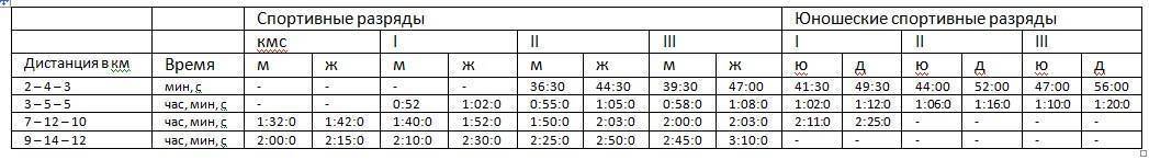 - I юношеский разряд: юноши — 2 часа 54 минуты, девушки — 3 часа 12 минут.
