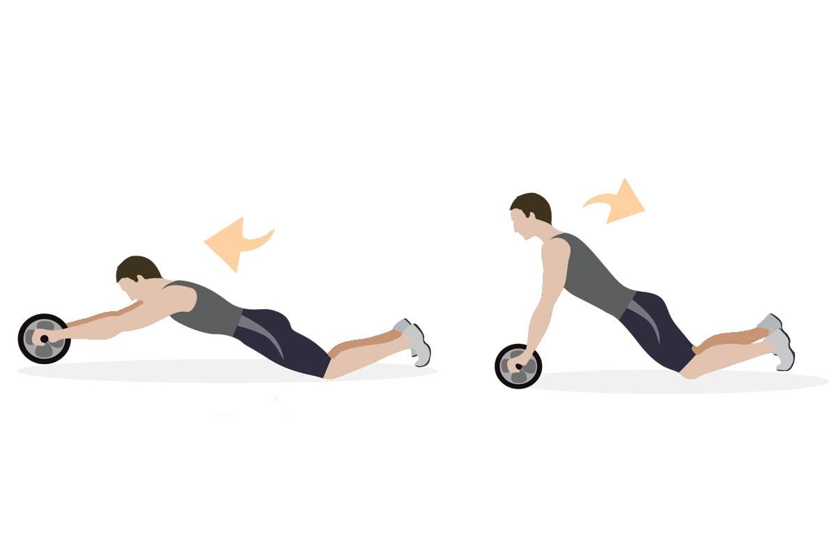 Одной из лучших упражнений для проработки прямой мышцы живота и разделения пресса на кубики. Сперва отведите руки с роликом как можно дальше, затем, напрягая мускулатуру живота, рук и верхней части спины, подкатите ролик ближе к себе, поднимаясь вверх.