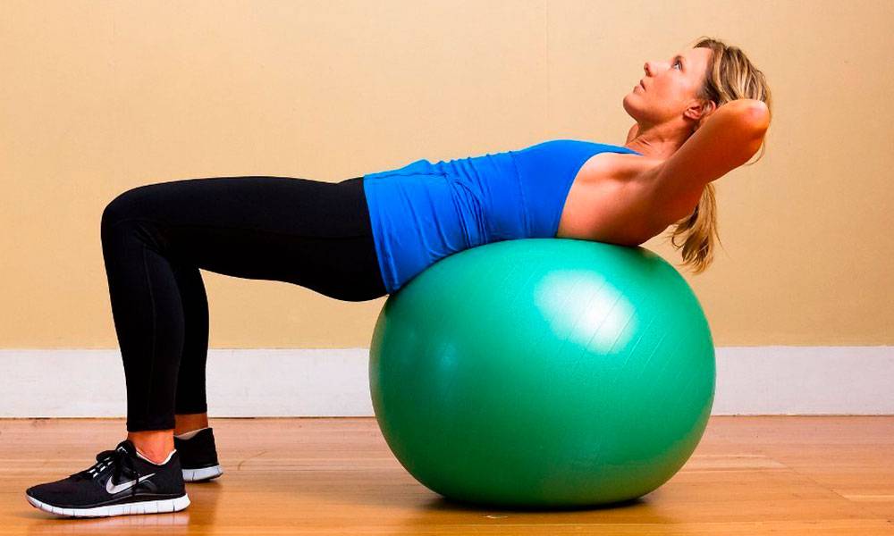 Прилягте на пол и согните ноги в коленях (можно сгибать поочередно) и с помощью мышц спины и мышц ног поднимаем туловище в области таза. Данное упражнение сделайте около 20 раз.